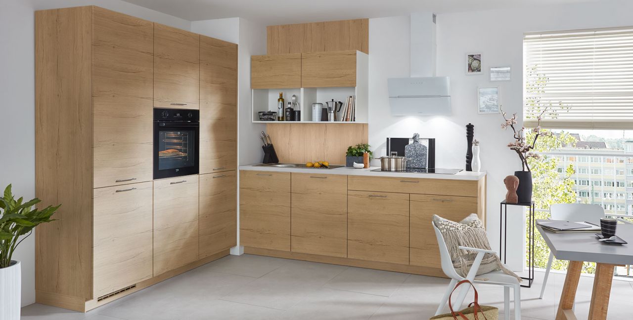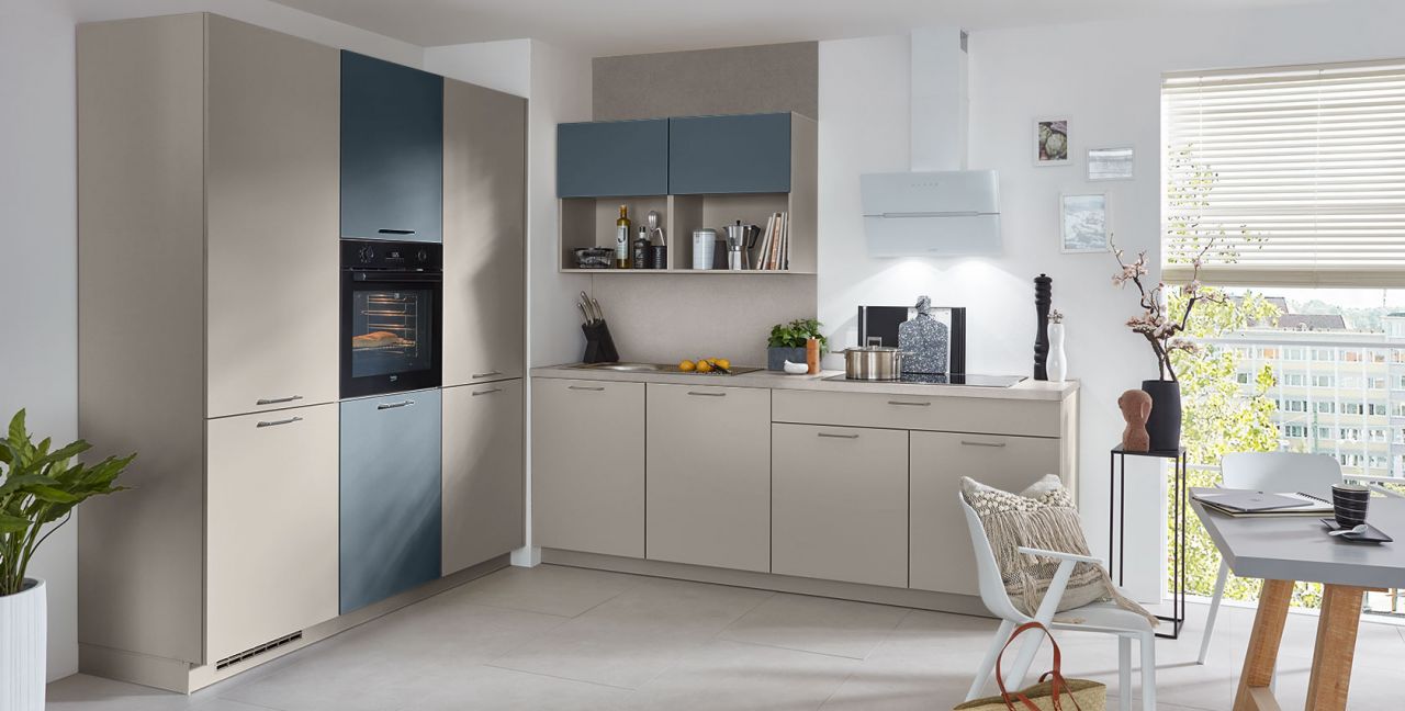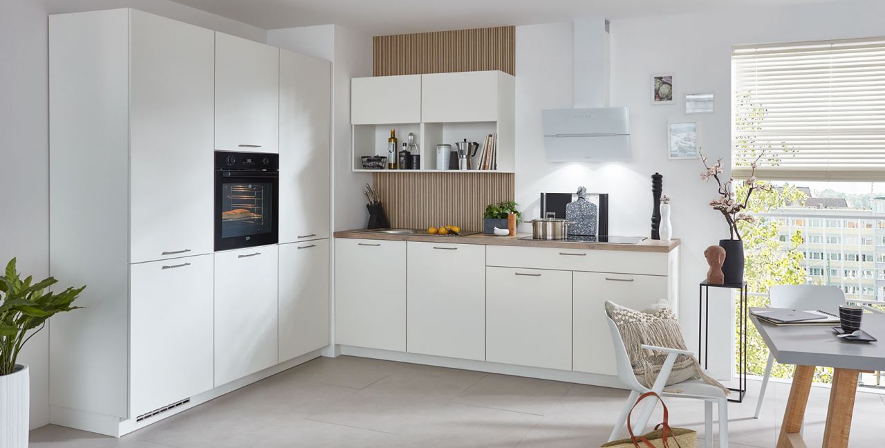 Inklusive Einbaubackofen Beko BBIM173N0BMPE Energieeffizienzklasse A+, Glaskeramik Kochfeld mit Induktion Beko HII84700UFTX, Designesse Edelstahl / Schwarzglas Elica WISE90BK Energieeffizienzklasse B, Kühlschrank Beko BSSA210K4SN Energieeffizienzklasse E, Einbauspüle Edelstahl Rodi Okio Line 85 Deep, XL-Schränken, Wandschrankregal.